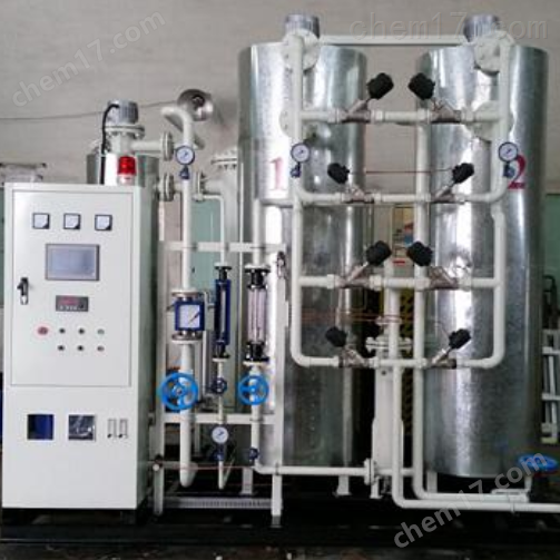 原料氮气(经原氮进口阀)与添加氢气(经加氢进口阀,氢气流量计后)相混合,然后进入除氧器,在催化剂的作用下,使氮气中杂质氧与氢反应生成水汽,除氧器工作温度控制在80~100℃,使催化反应生成的水汽能全部被气体带走,同时催化剂不致受到水汽影响而中毒,可无需再生处理长期使用。