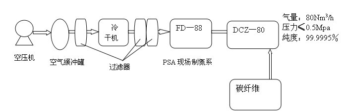 本套装置由压缩空气系统、压缩空气净化系统、变压吸附制氮系统、氮气纯化系统组成。