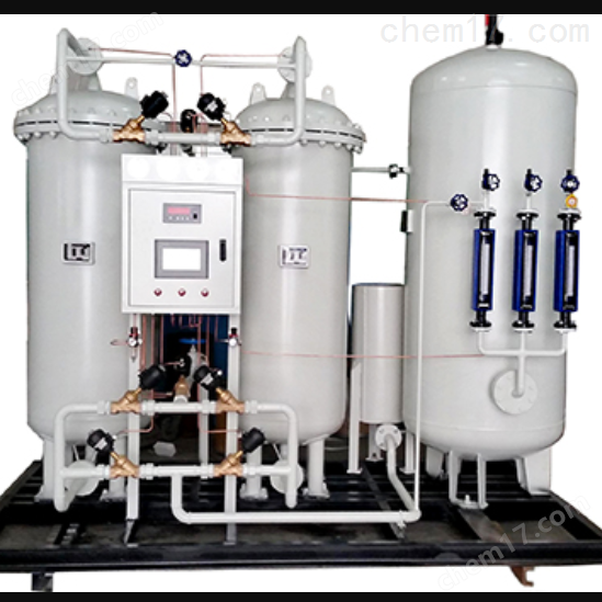 PSA碳分子筛制氮装置中有两个装满碳分子筛的吸附塔,洁净、干燥的压缩空气进入变压吸附制氮装置,流经装填有碳分子筛(CMS)的吸附塔。压缩空气由下至上流经吸附塔,利用分子筛在不同压力下对氮和氧等的吸附力不同,氧气、水、二氧化碳等组份在碳分子筛表面吸附,未被吸附的氮气在出口处被收集成为产品气,由吸附塔上端流出,进入缓冲罐。经一段时间后,吸附塔中被碳分子筛吸附的氧达到饱和,需进行再生。