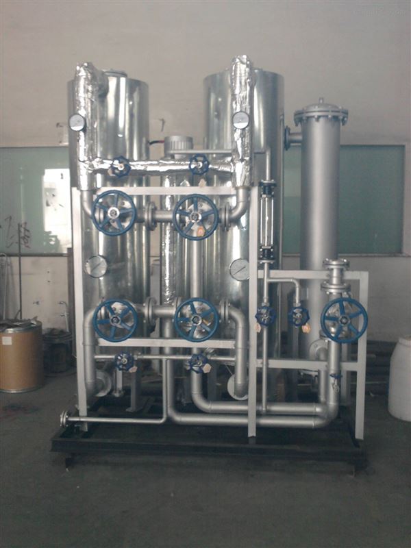 设备保养树立正确的保养观念,对保养引起足够的重视。良好的操作习惯和定期的保养维护,能延长设备正常使用寿命,减少能耗,降低维修成本,更能有效避免突发性故障,大幅降低故障对生产带来的负面影响。日常使用注意事项 1.机器所需电源、水源、气源、温度条件的正常供应和正常的开启关闭;尤其是电源电压的稳定,必要时可以装设稳压器,减少因电源问题带来对控制器、电磁阀的损坏。2. 随时注意冷干机入口风量、温度和压力,保持冷干机蒸发压力在0.4~0.5 MPa之间,不要超过额定。 3.每天检查过滤器的自动排污阀和冷干机的自动排水器,以免堵塞而失去排水、排污作用。 4.每周定期检查冷干机的散热片是否干净,以免因散热不良影响干燥机的效用与寿命。 5.按仪器使用守则的要求进行操作及日常维护,不定期检查电磁阀/气动阀的灵敏度、调压阀的压力范围、气体分析仪的精度、吸附塔的压紧情况、消声器排气状。