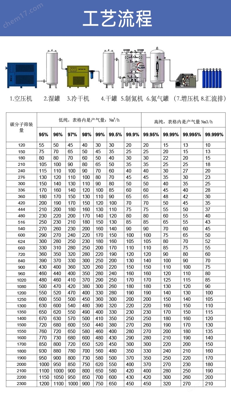 本套装置由压缩空气系统、压缩空气净化系统、变压吸附制氮系统、氮气纯化系统组成。