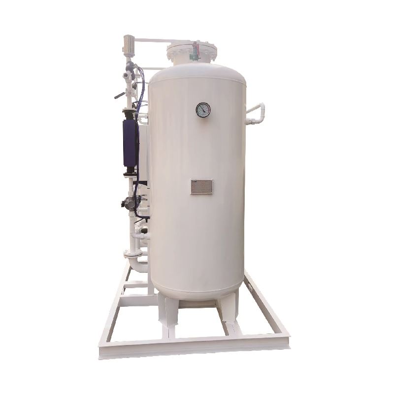 PSA制氮机是按变压吸附技术设计、制造的氮气制取设备。制氮机以优质碳分子筛(CMS)作为吸附剂,采用常温下变压吸附原理(PSA)使空气中的氮氧分离制取高纯度的氮气。通常使用两吸附塔并联,由进口PLC控制进口气动阀自动运行,交替进行加压吸附和解压再生,完成氮氧分离,获得所需高纯度的氮气。